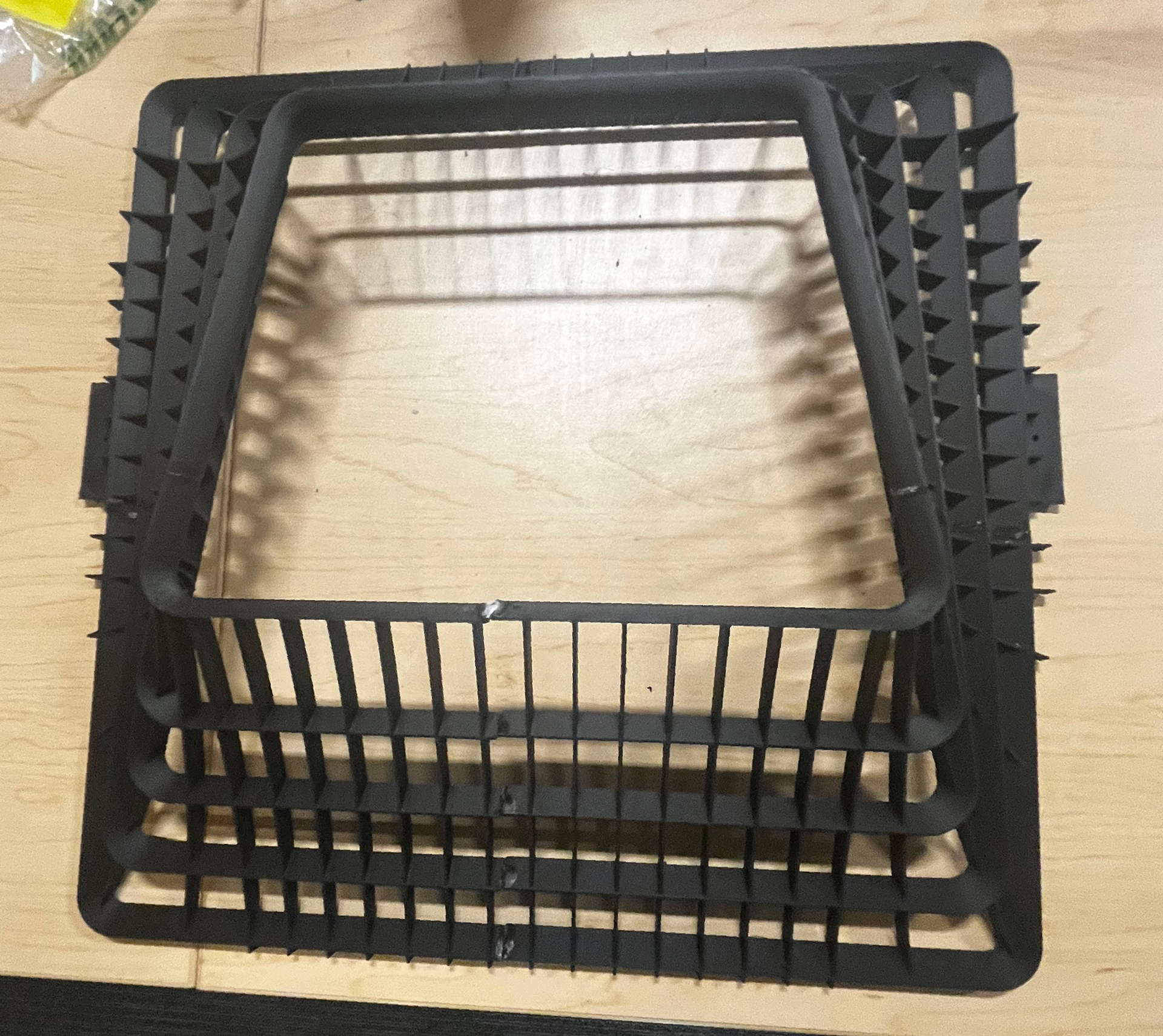 The process of designing this piece required research of COTS products and how they direct airflow through evaporator/fan systems. Computational fluid dynamics showed an uneven airflow distribution in the system and indicated that more airflow should be directed to the bottom of the evaporator. For this reason, I designed the part as a trapezoidal shape to increase airflow to the bottom (wider end) of the grate.