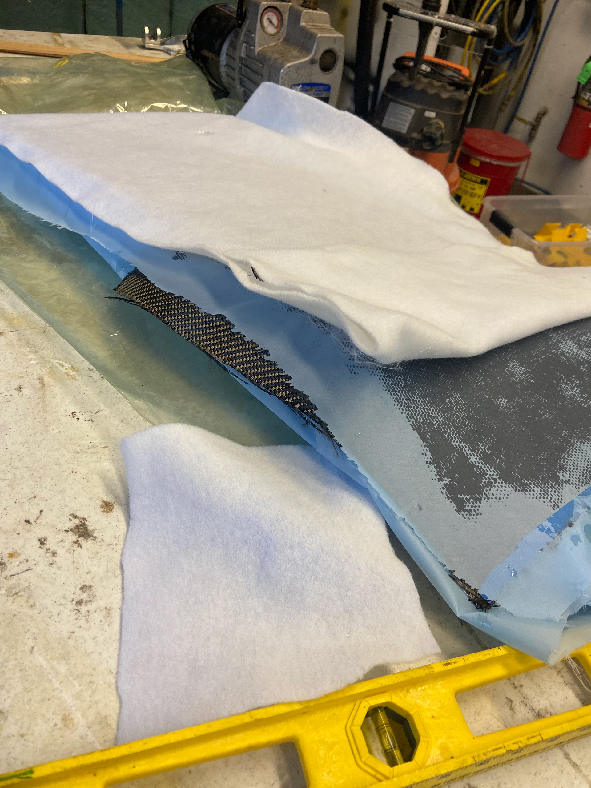 The challenge of using carbon fiber composites is finding the most effective and efficient way of molding them. Here, I tested multiple different techniques of epoxy resin and vacuum sealing to find out how to speed up the process. The other challenge with using carbon fiber in composites is that carbon fiber is a carcinogen when inhaled. Therefore, the composites must not be cut, drilled, or otherwise modified in a way where the particles of the material will enter the person's lungs. To overcome this, the Baja team has set a strict set of rules to follow when cutting or drilling the material. This includes a well-ventilated area and the use of N-95 masks.