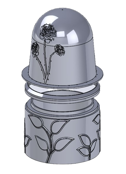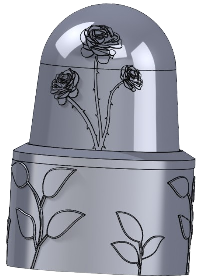 Challenges I encountered during this project included overhangs in the embossed roses on the dome, which made it difficult to remove the PET-G from the 3D print. The print was also not entirely hollow and had a false floor, which made it harder to introduce compressed air to the system to remove the plastic. To fix this issue, I had to break the false floor to shoot compressed air directly between the ASA and PET-G.